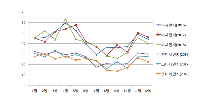 부산의 미세먼지는 봄에는 황사영향으로 다소 높은 수준이다. 반면 여름에는 강수량이 높아 상당히 낮아지는 경향을 보인다. 부산은 미세먼지를 줄이기 위해 많은 정책을 펴고 있다. 선박 및 항만분야에서는 배출규제 해역을 지정하고 경유 야드 트랙터 LNG 연료 전환을 추진 중이다. 또한 육상전력공급시설 설치 사업을 벌이고 있다.