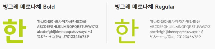 빙그레 메로나체는 보기만 해도 산뜻한 느낌이 든다. 빙그레의 한글서체 시리즈 제4탄 메로나체는 초록빛 산뜻한 메론의 맛이 날 것 같은 무료폰트다.