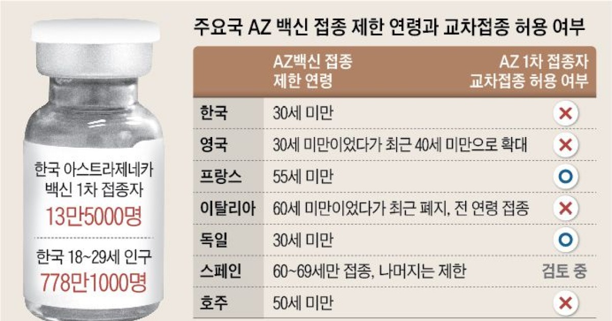 아스트라제네카와 화이자 백신의 교차 접종은 문제가 없다는게 당국의 입장이다. 해외에서도 심각한 반응은 보고되지 않았다고 밝혔다. 이미 독일, 프랑스, 스웨덴 등 6개 나라에서 교차 접종을 허용하고 있다. 1차로 아스트라제네카 백신을 접종하고, 2차로 화이자와 모더나와 같은 mRNA 백신을 교차 접종한 결과 면역 효과는 좋았고, 심각한 이상반응도 없었다고 한다.