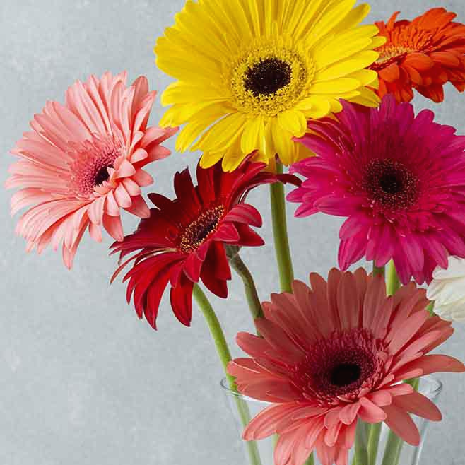 거베라(Gerberas)는 국화의 일종으로 우리에게는 데이지로 잘 알려져 있다. 크고 화려하며 컬러도 다양해 화환과 결혼 부케에 꼭 들어가는 꽃이다. 데이지는 식물정원과 꽃꽂이 용도로 널리 쓰이는 대중적인 꽃이다. 관상용으로도 좋고 공기정화 식물로도 인기가 높다.